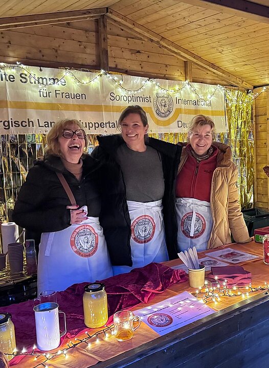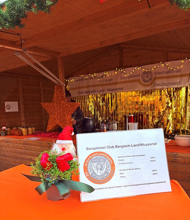 Zum zweiten Mal fand am vierten Advent das stimmungsvolle Weihnachtsdorf am Toelleturm statt – und wir vom Soroptimist Club Bergisch-Land/Wuppertal waren wieder mit einer eigenen Hütte dabei. Mit Hot Aperol und asiatischer Linsensuppe konnten wir viele Gäste kulinarisch verwöhnen. Neben winterlicher Atmosphäre, guten Gesprächen und viel gemeinsamer Freude stand vor allem der gute Zweck im Mittelpunkt.